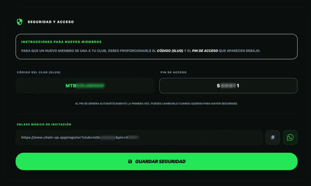 ✅ ¡Listo! Ahora eres el administrador principal de tu club en Chain-up.